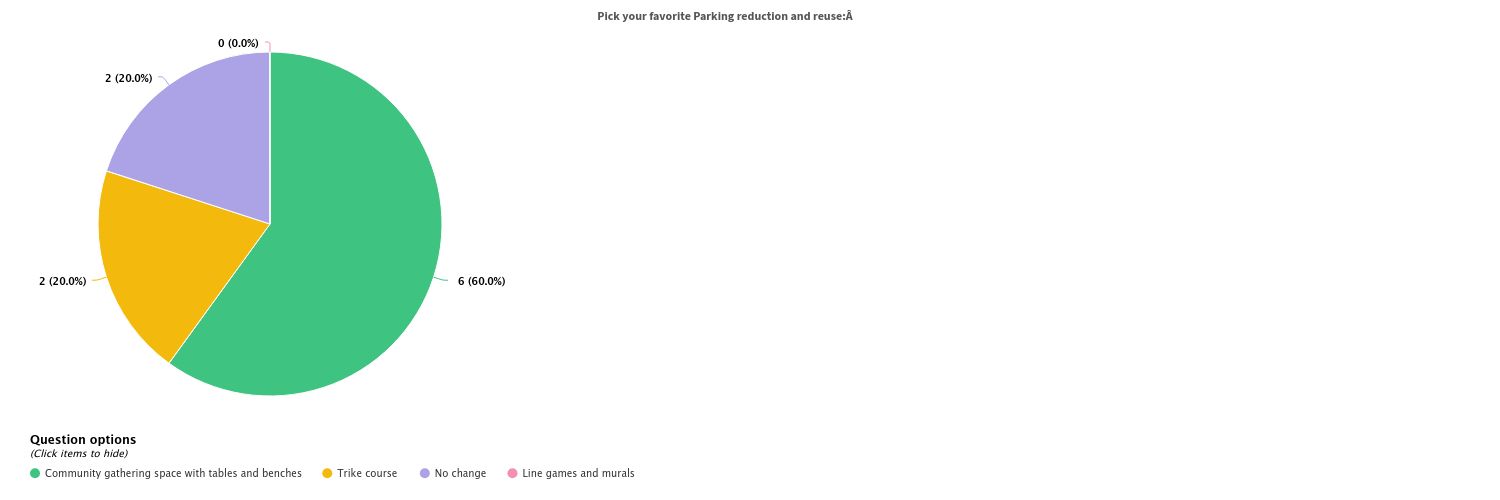 When asked how we should reduce and reuse the parking lot at Campus Park 60% responded that they would like Community gathering space with table and benches.