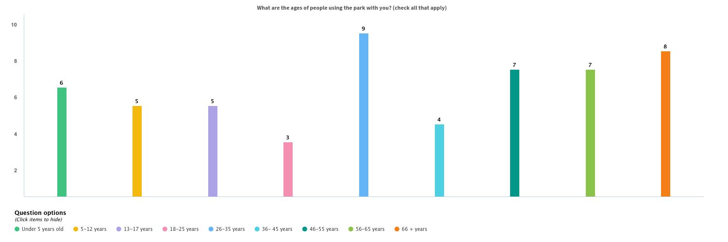 You can see below that the people using the park are generally between 26-45 years old and those 46 years and older.