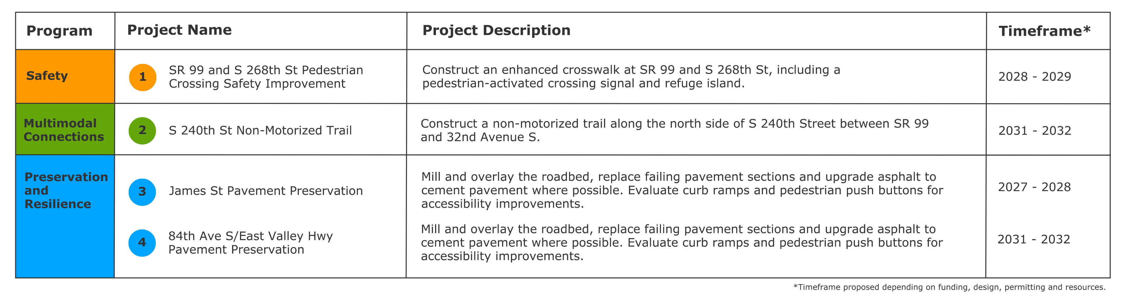 The TIP lists projects anticipated to begin preliminary engineering, right-of-way acquisition, or construction within six years. The TIP includes ongoing citywide transportation plans and programs, and provides a menu for grant pursuits by the City. The majority of TIP projects in Kent are funded through partnerships or by competitive grant awards.